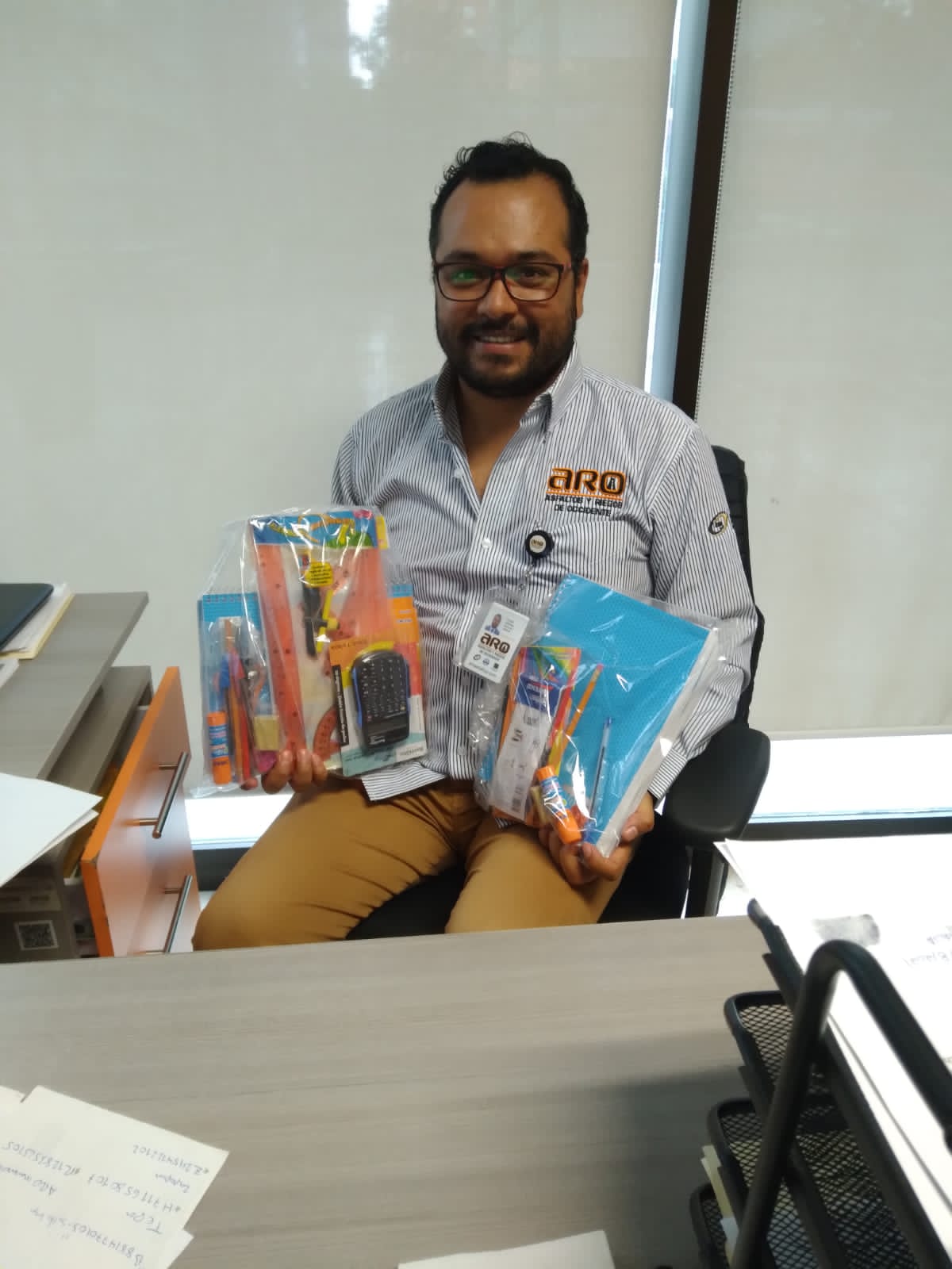 Como cada año, se hizo ya la entrega de UTILES ESCOLARES a todos los hijos de nuestros colaboradores, premiando a aquellos que tienen promedio alto con un pequeño detalle.