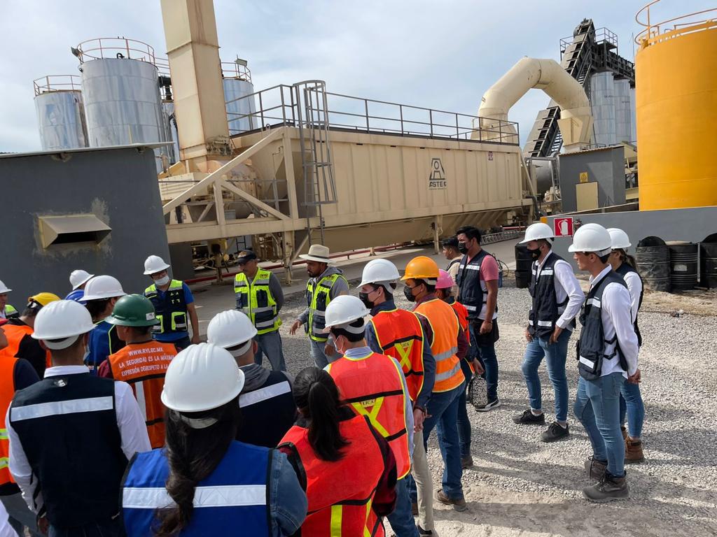 Visita de estudiantes de Ingeniería Civil y Arquitectura de la universidad de especialidades UNE y de universidad CUCEI a nuestras instalaciones de planta de Asfalto y Laboratorio.