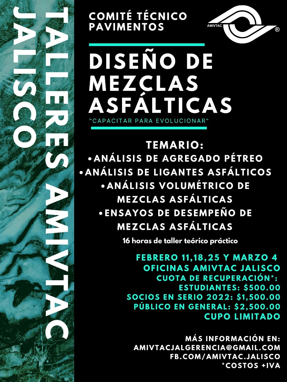 Con el fin de mantener a nuestros colaboradores al día con los nuevos conocimientos en la materia, algunos nuestros colaboradores asistieron al taller Diseño de Mezcla Asfáltica, por parte de AMIVTAC.