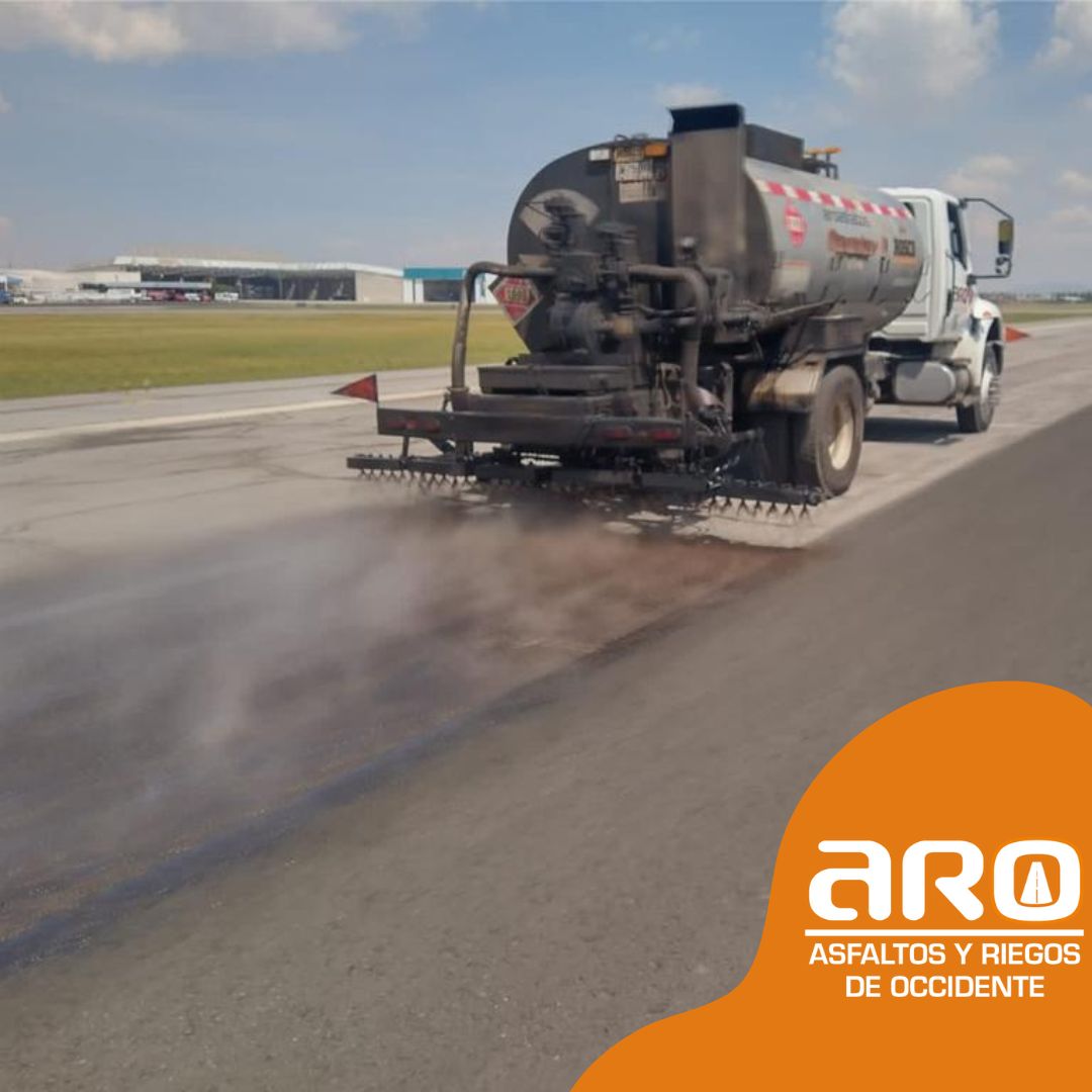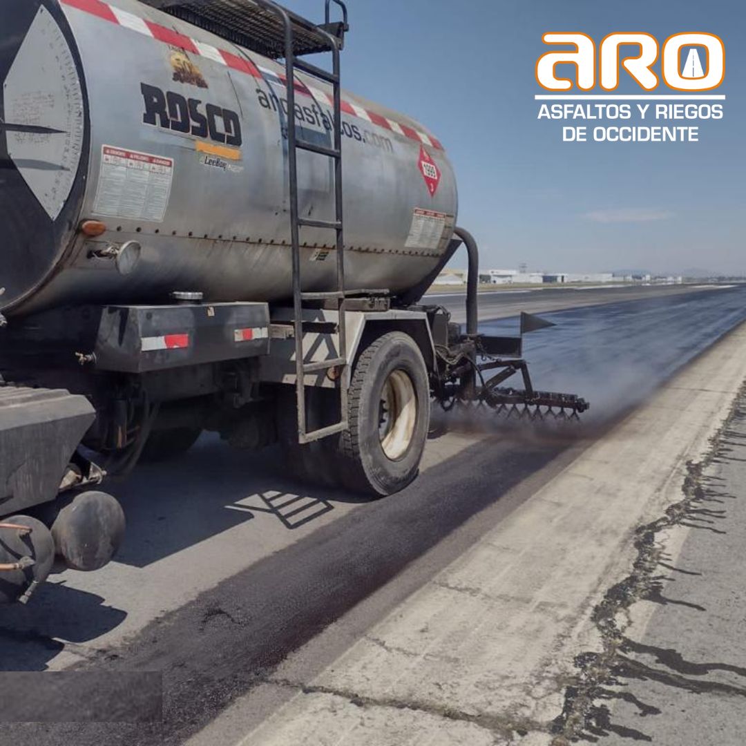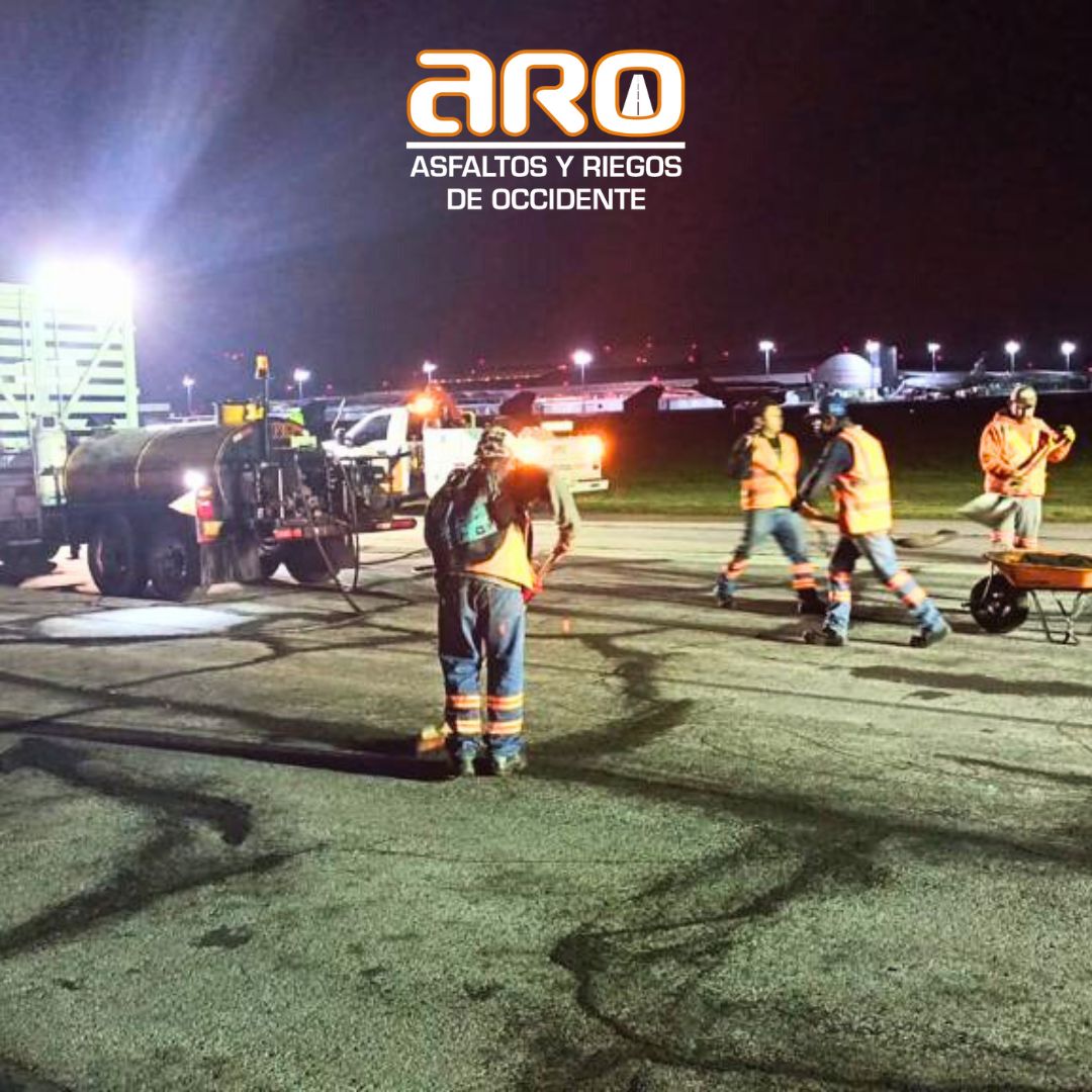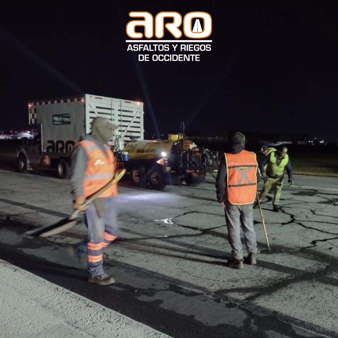 Calafateo de grietas y riego de taponamiento en la pista del aeropuerto internacional de Toluca.