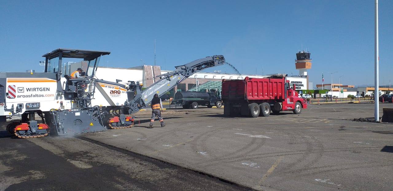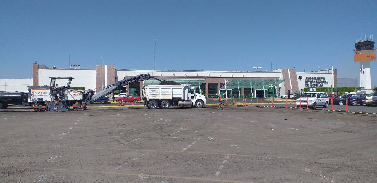 Trabajos de pavimentación en el aeropuerto Internacional de Morelia a cargo del Grupo Aeroportuario del Pacifico